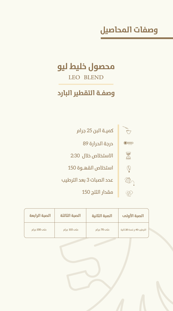 خليط ليو هو الخيار المثالي لمن يبحث عن كوب قهوة يومي متوازن يجمع بين القوام الثقيل والحلاوة، وهو مصمم خصيصاً ليعطي نتائج ممتازة في مشروبات الاسبريسو والحليب.